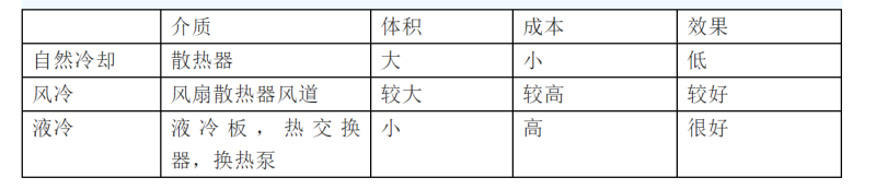 在儲能系統(tǒng)中,目前小功率的系統(tǒng),如充電寶、手機、手提電腦等,一般采用自然散熱的方式,中功率系統(tǒng),如便攜式電源、戶用儲能系統(tǒng)、UPS,工業(yè)中小型集裝儲能等,一般采用強制風(fēng)冷的方式;電動汽車儲能系統(tǒng),一般采用液冷技術(shù)。目前中大型儲能系統(tǒng),也開始采用液冷技術(shù)。