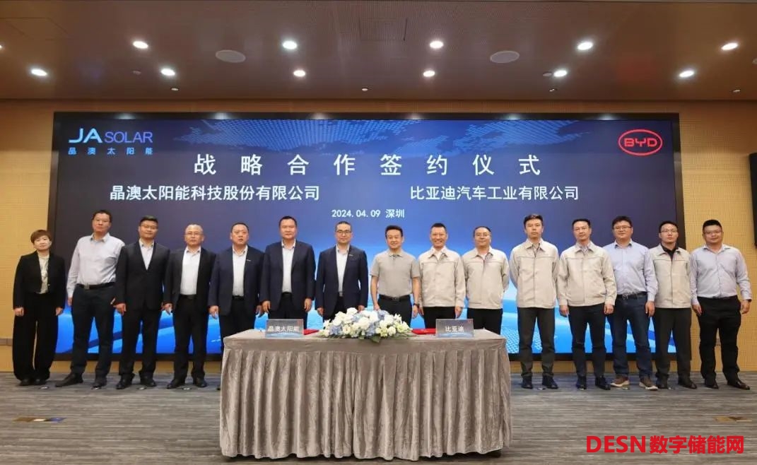 中國儲能網(wǎng)訊:近日,比亞迪與晶澳太陽能科技股份有限公司(簡稱“晶澳科技”)在深圳比亞迪總部舉行戰(zhàn)略合作簽約儀式。比亞迪儲能及新型電池事業(yè)部總經(jīng)理尹小強、晶澳科技執(zhí)行總裁楊愛青見證儀式;比亞迪儲能副總經(jīng)理張金龍、晶澳科技副總裁、智慧能源事業(yè)部總經(jīng)理李棟代表雙方簽署協(xié)議;比亞迪儲能家儲產(chǎn)品線總監(jiān)姜鋒、晶澳科技助理總裁張鳳海出席儀式。