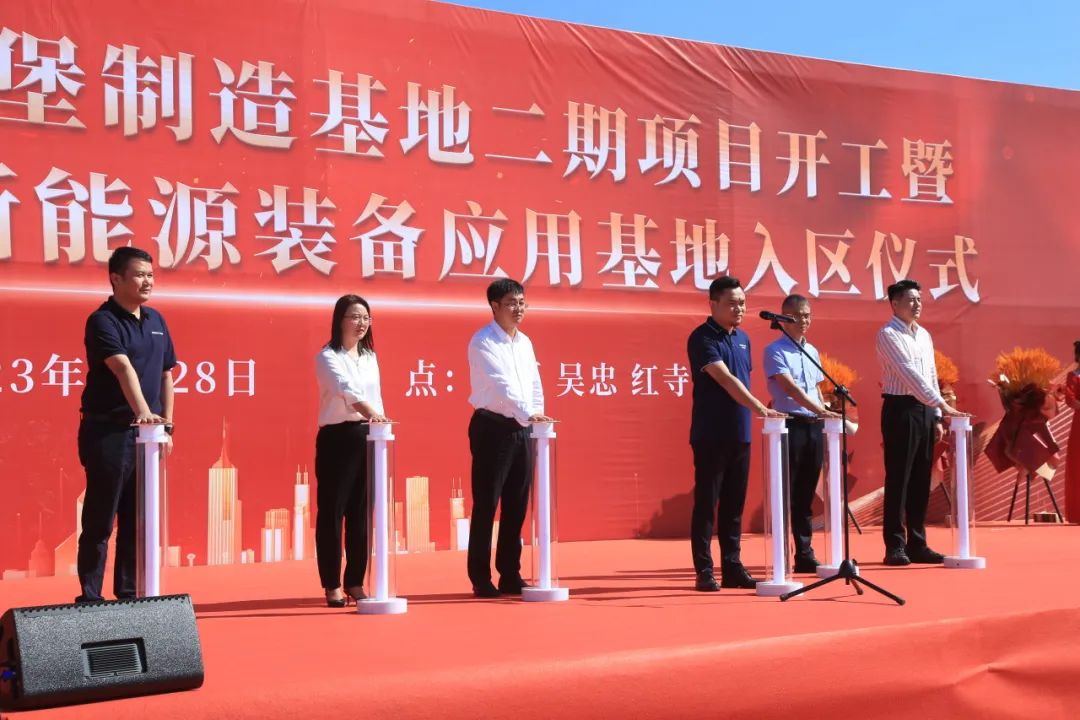 隨后,采日能源總經理王健鵬、采日能源國內銷售總經理張小暻、客戶代表盧昶宏主任,以及出席的主要嘉賓共同按動了開工啟動柱,正式宣告寧夏采日制造裝備產業(yè)園二期項目開工。