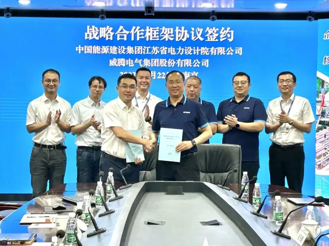 最后,雙方參會(huì)人員圍繞行業(yè)發(fā)展形勢、潛在合作領(lǐng)域等話題深度交換了意見。在全體參會(huì)人員的見證下,江蘇院副總經(jīng)理吳剛、威騰電氣董事長蔣文功代表雙方簽署了戰(zhàn)略合作框架協(xié)議。