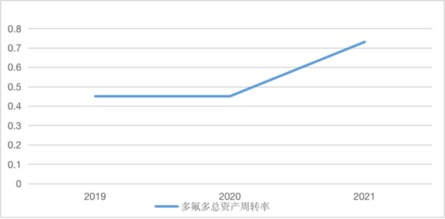 圖5 2019年~2021年多氟多總資產(chǎn)周轉(zhuǎn)率的變動情況
