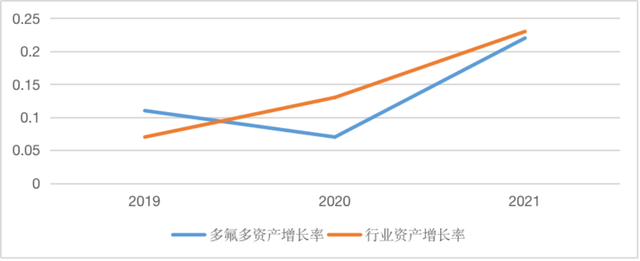 圖4 2019年~2021年多氟多和所在行業(yè)的資產(chǎn)增長率的變動情況