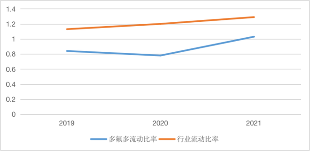 圖2 2019年~2021年多氟多和所在行業(yè)的流動比率變動情況