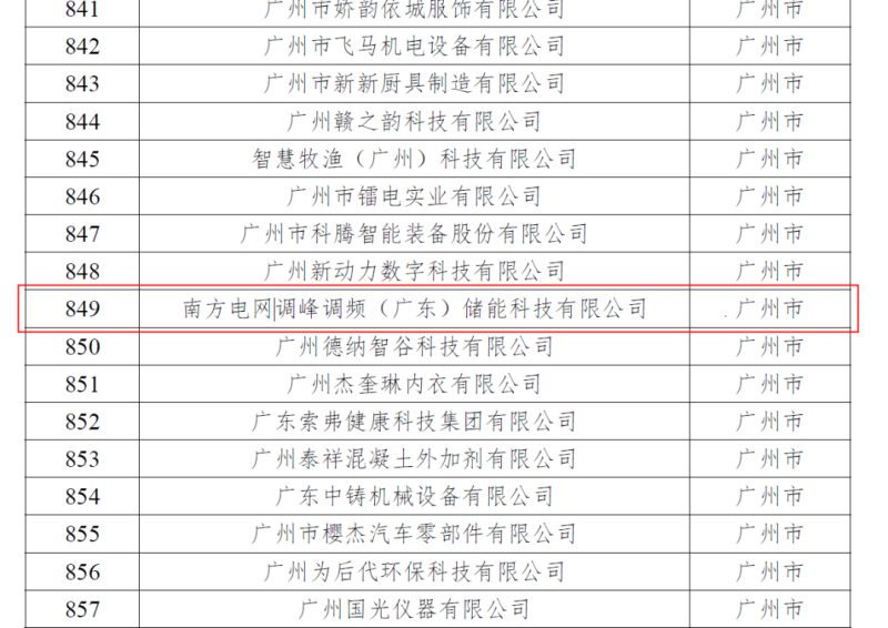 中國儲能網(wǎng)訊:近日,廣東省科學技術(shù)廳印發(fā)廣東省2022年第五批科技型中小企業(yè)入庫名單,南方電網(wǎng)調(diào)峰調(diào)頻(廣東)儲能科技有限公司(以下簡稱“儲能科技公司”)成功入選,成為調(diào)峰調(diào)頻公司首家通過認定的科技型中小企業(yè)。