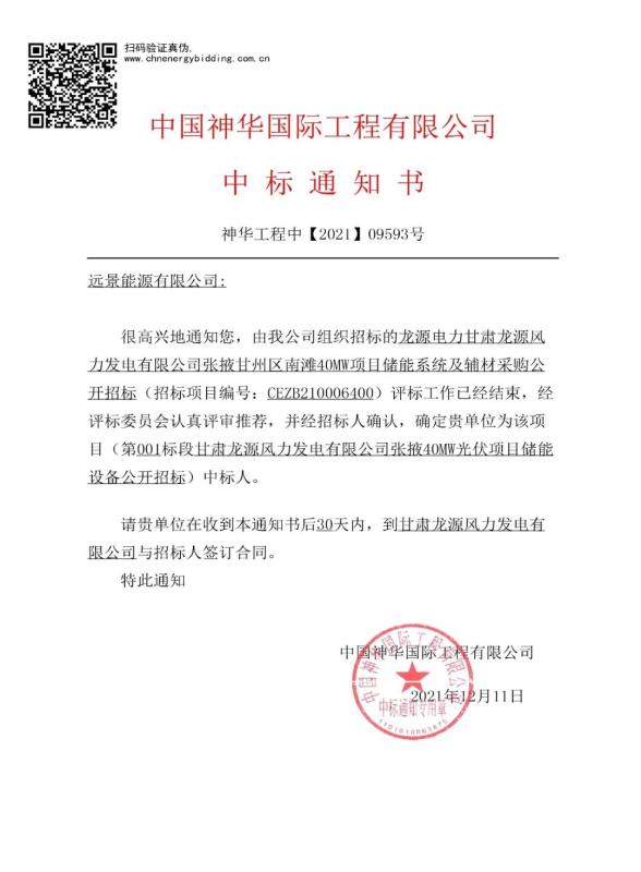 中國(guó)儲(chǔ)能網(wǎng)訊:近日,由甘肅龍?jiān)达L(fēng)力發(fā)電有限公司投資建設(shè)的龍?jiān)磸堃锤手輩^(qū)南灘光伏發(fā)電配套儲(chǔ)能項(xiàng)目招標(biāo)結(jié)果公示,遠(yuǎn)景能源中標(biāo)。