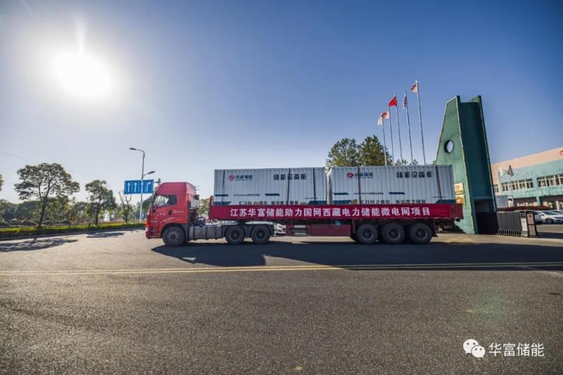 2021年11月09日上午,江蘇華富儲(chǔ)能新技術(shù)股份有限公司廠門前車水馬龍,公司承建的國(guó)網(wǎng)西藏電力儲(chǔ)能微電網(wǎng)項(xiàng)目設(shè)備整裝待發(fā)。