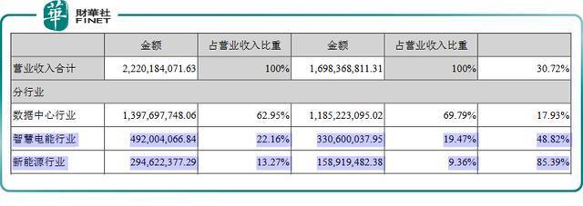 2021年上半年,儲(chǔ)能業(yè)務(wù)在公司的營(yíng)收占比為13.27%,2020年這一占比為10.71%,說明在逐步釋放,盡管數(shù)據(jù)中心業(yè)務(wù)最高占比62.95%,其次是智慧電能占比22.16%,如下表所示: