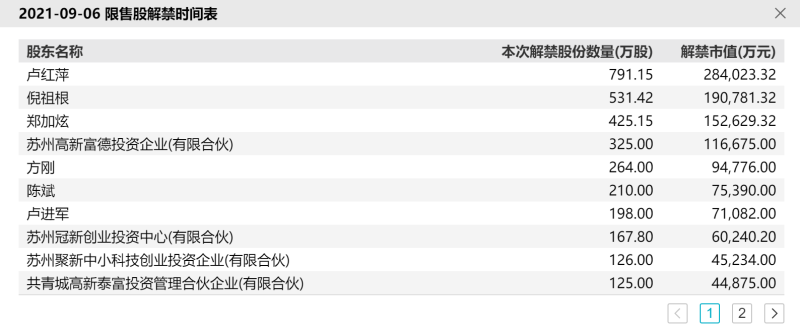 根據(jù)固德威8月26日發(fā)布的公告,本次上市流通的限售股為公司首次公開發(fā)行部分限售股,限售股股東數(shù)量為16名,鎖定期為自公司股票上市之日起12個月,該部分限售股股東對應(yīng)的股份數(shù)量為3567萬股,占公司股本總數(shù)的40.53%。而盧紅萍、倪祖根、鄭加炫、方剛、盧進軍5名股東就在此輪解禁的股東名單中。