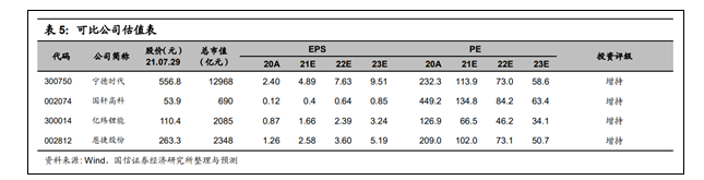 國信證券對寧德時代相關數(shù)據(jù)的預測