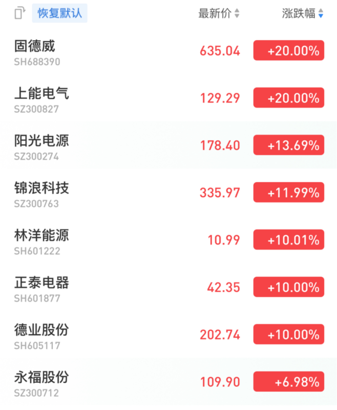 在組件企業(yè)由于供應(yīng)鏈原因波動到全年出貨與利潤時(shí),資本的風(fēng)口持續(xù)轉(zhuǎn)向了逆變器與儲能概念股。7月30日,固德威、上能電氣、陽光電源、錦浪科技、林洋能源、正泰電器、德業(yè)股份漲幅均超過10%。