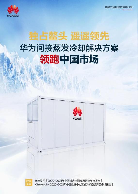 賽迪顧問《2020-2021年中國機房空調(diào)市場研究年度報告》指出,華為持續(xù)在間接蒸發(fā)冷卻上進行技術(shù)革新,推動間接蒸發(fā)冷卻技術(shù)向智能化發(fā)展,并在運營商、IDC、政府等各行各業(yè)均得到廣泛應(yīng)用及認可。2020 年,華為間接蒸發(fā)冷卻解決方案問鼎中國市場排名第一。