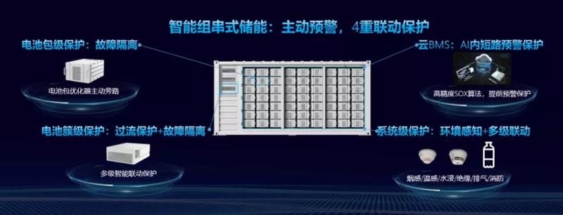 ? 智能組串式儲(chǔ)能4重聯(lián)動(dòng)保護(hù):從電池包級(jí)、電池簇級(jí)、系統(tǒng)級(jí)到云BMS,主動(dòng)預(yù)警,從被動(dòng)安全到主動(dòng)安全。