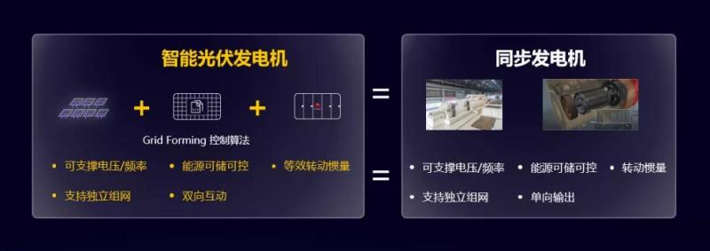 Grid Forming:使能光伏電壓源屬性,并網(wǎng)特性對(duì)標(biāo)同步發(fā)電機(jī),實(shí)現(xiàn)1. 智能光伏發(fā)電機(jī) 2. 可支撐電壓/頻率 3. 能源可儲(chǔ)可控 4. 等效轉(zhuǎn)動(dòng)慣量 5. 支持獨(dú)立組網(wǎng) 6. 雙向互動(dòng)等六大特性。