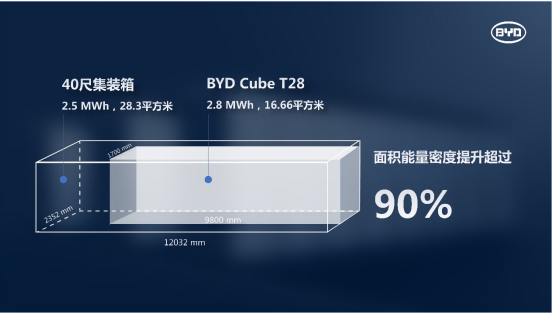 BYD Cube T28儲能系統(tǒng)。比亞迪全新一代電網(wǎng)級儲能產(chǎn)品BYD Cube T28,占地僅16.66平方米儲能容量2.8MWh,相較于行業(yè)內(nèi)40尺標(biāo)準(zhǔn)集裝儲能系統(tǒng)單位面積能量密度提升了超90%,率先支持1300V直流電壓,匹配不同品牌的高電壓換流器。