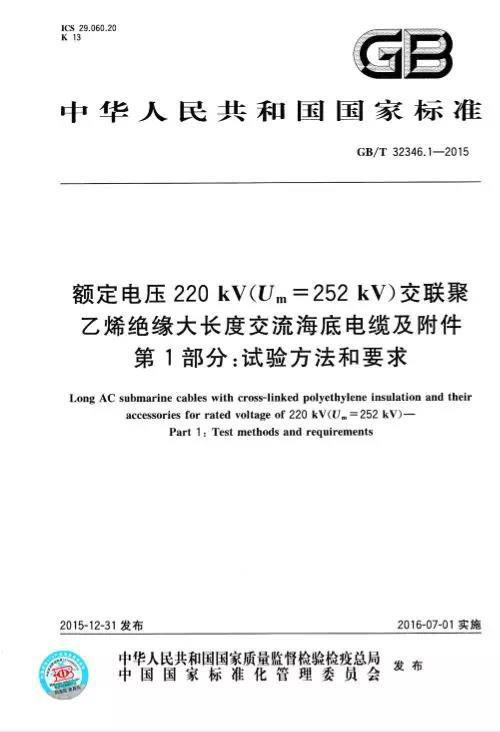 廣州嶺南電纜股份有限公司參與起草了《額定電壓220kV交聯(lián)聚乙烯絕緣大長度交流海底電纜及附件第1部分:試驗(yàn)方法和要求》此項(xiàng)國家標(biāo)準(zhǔn)(GB/T 32346.1-2015)。該部分標(biāo)準(zhǔn)規(guī)定了額定電壓220kV交聯(lián)聚乙烯絕緣大長度交流海底電纜及其附件的試驗(yàn)方法和要求。