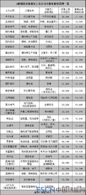 編者注:1、30家公司以電池、系統(tǒng)制造商為主,包括部分電池設備制造商。不含原材料生產及以下游儲能開發(fā)為主體的企業(yè);2、大股東持有上市公司股份,以該公司最新股權質押公告日為準,不涉及此后大股東增減持部分;3、有部分大股東質押過高企業(yè),已采取多方措施舒緩解除質押,本表以上市公司公告為準。