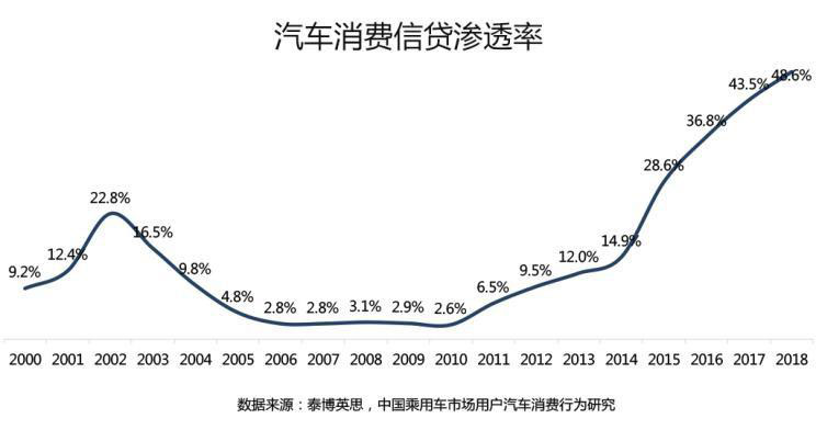 『2001-2017年利用汽車消費(fèi)信貸購車的汽車用戶比例』