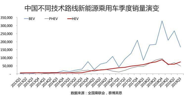 同樣的情形在歐美等國也正在發(fā)生之中。以德國為例,2019年1-10月份德國純電動(dòng)乘用車市場(chǎng)較上年同期增長74%,至5.5萬輛規(guī)模;與此同時(shí),德國混合動(dòng)力乘用車市場(chǎng)較上年同期增長93%,至15.6萬輛規(guī)模,混合動(dòng)力乘用車市場(chǎng)規(guī)模是純電動(dòng)乘用車市場(chǎng)規(guī)模的2.8倍之多。