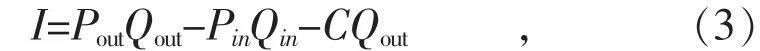 式中:I 為儲(chǔ)能系統(tǒng)的年收益額;Pin 和P out 分別為儲(chǔ)能電價(jià)和用電電價(jià);Qin 和Q out 分別為儲(chǔ)能電量和用電量;C 為儲(chǔ)能裝置的度電成本。