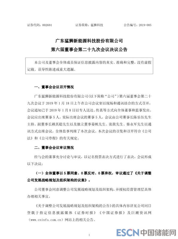 原標題:猛獅科技董事全票通過調整戰(zhàn)略議案 做優(yōu)做強電池制造和儲能業(yè)務