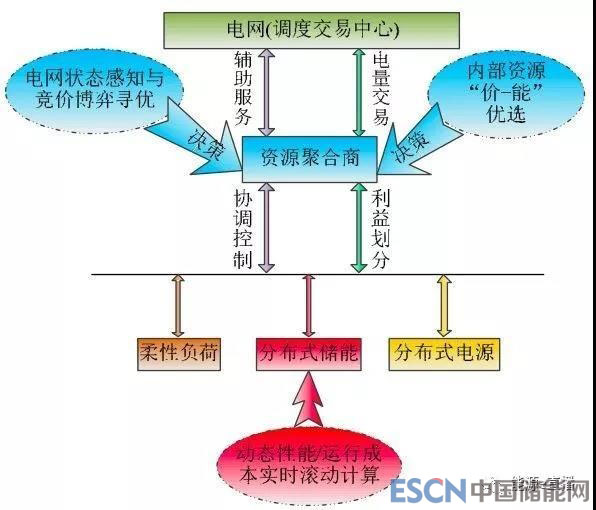 圖 2 分布式儲能匯聚(資源聚合商)參與電網(wǎng)調(diào)度交易示意圖