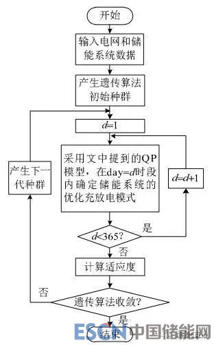 綜合目前國內(nèi)外開展的分布式儲能系統(tǒng)的優(yōu)化規(guī)劃方面的研究,大多建立以技術(shù)性或經(jīng)濟性或技術(shù)與經(jīng)濟性綜合目標的目標函數(shù),在儲能本身和系統(tǒng)運行的約束條件下開展尋優(yōu)求解,目標函數(shù)一般可綜合為單目標優(yōu)化,約束條件包含等式約束和不等式約束,針對該優(yōu)化求解問題也開展了較多研究,多采用智能求解算法進行求解,比如遺傳算法。