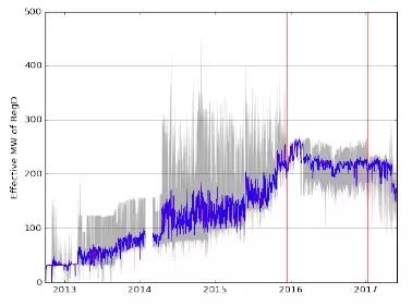 2016年儲(chǔ)能協(xié)會(huì)發(fā)現(xiàn)了現(xiàn)有信號(hào)和估值算法存在不一致的地方。修改后效益因子曲線降低了RegD估值,原因是其運(yùn)行方向與系統(tǒng)所需相反,但是信號(hào)系統(tǒng)調(diào)整后RegD的方向不會(huì)與系統(tǒng)需求相反了。儲(chǔ)能協(xié)會(huì)指責(zé)PJM因?yàn)槠湎到y(tǒng)缺陷降低了估值系統(tǒng),隨后系統(tǒng)缺陷修復(fù)后依然保持較低估值。