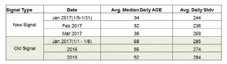 從利用經(jīng)濟(jì)手段保證系統(tǒng)可靠性的角度看,PJM這些市場(chǎng)規(guī)則調(diào)整改善了整體穩(wěn)定性。首先,2015年12月調(diào)整RegD估值系統(tǒng)和覆蓋率有效降低了維持ACE所需人為操作的次數(shù)(如圖5所示)。2017年調(diào)整信號(hào)系統(tǒng)有效降低了人為操作的必要性,由于不會(huì)再下發(fā)惡化ACE的信號(hào)了。其次,PJM通過(guò)引入新信號(hào)系統(tǒng)實(shí)現(xiàn)了ACE控制能力的提升。如表3所示,每日的ACE均值趨近于0,同時(shí)ACE的波動(dòng)也減低了。這種ACE控制能力的改善表明了RegD資源響應(yīng)準(zhǔn)確性的降低被信號(hào)提升作用所抵消。