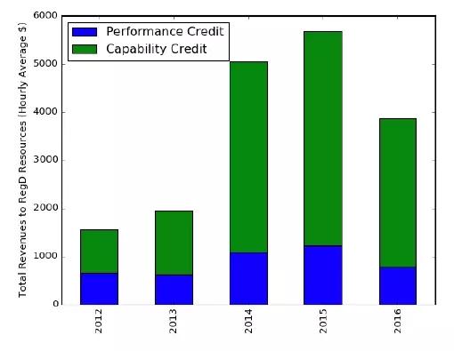 儲(chǔ)能調(diào)頻服務(wù)具有良好的精確性,但持續(xù)時(shí)間有限。近期PJM調(diào)整調(diào)頻規(guī)則是電力系統(tǒng)中精確性和持續(xù)性平衡的結(jié)果。調(diào)整后的市場(chǎng)規(guī)則能夠刺激各方在儲(chǔ)能開(kāi)發(fā)和投資過(guò)程中更重視電量而不是功率。在條件中性新版RegD信號(hào)規(guī)則下,儲(chǔ)能能夠吸收或釋放更多能量將會(huì)獲得更高的性能得分。2016年P(guān)JM的性能合規(guī)經(jīng)理Eric Hsia解釋:“PJM中電池儲(chǔ)能的未來(lái)取決于技術(shù)進(jìn)步。如果電池儲(chǔ)能放電時(shí)間長(zhǎng)于1小時(shí),其想?yún)⑴c何種服務(wù)都可以”。然而,為了這些市場(chǎng)刺激能夠更有效,PJM需要調(diào)整估值系統(tǒng)以更好實(shí)現(xiàn)新信號(hào)規(guī)則的價(jià)值。