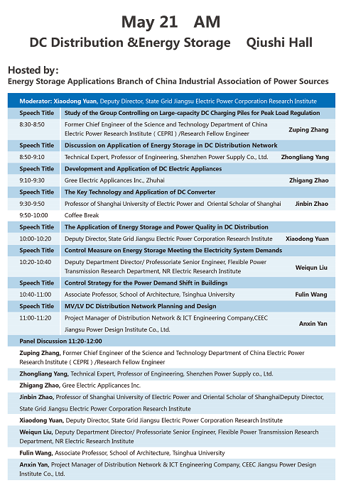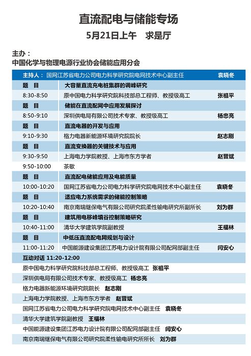 大會將分別設(shè)置儲能產(chǎn)業(yè)政策解讀、儲能電站、新能源并網(wǎng)、微電網(wǎng)、能源互聯(lián)網(wǎng)+多能互補(bǔ)、國際儲能、分布式光伏與儲能系統(tǒng)、儲能電池、通信儲能、氫能與燃料電池、直流配電與儲能、光儲充電站、投融資等13個專場論壇。以下為直流配電與儲能專場大會議程表。