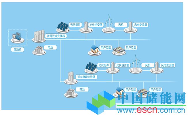(3)匯川技術(shù)離網(wǎng)帶有柴油機(jī)方案——東澳島微電網(wǎng)示意圖