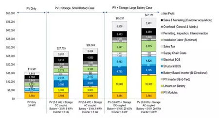 圖1:住宅太陽能光伏+儲(chǔ)能系統(tǒng),小型電池案例的總安裝成本和價(jià)格構(gòu)成模型(2016年美元現(xiàn)價(jià))