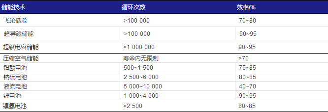 風電和光伏發(fā)電的出力波動在任何時候都可能發(fā)生,在目前的新能源發(fā)電預測水平下,難以實現(xiàn)分鐘級甚至秒級的風、光發(fā)電出力精確預測。因此,需要能夠快速響應的儲能技術。表1羅列了幾種典型的儲能技術。