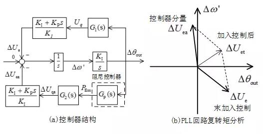 針對(duì)鎖相環(huán)振蕩失穩(wěn)這一問題,類似于同步發(fā)電機(jī)機(jī)電振蕩模態(tài)復(fù)轉(zhuǎn)矩分析,建立了風(fēng)電機(jī)組鎖相環(huán)回路的復(fù)轉(zhuǎn)矩分析模型。分析了風(fēng)電場接入點(diǎn)短路比以及鎖相環(huán)參數(shù)對(duì)系統(tǒng)穩(wěn)定性的影響規(guī)律。針對(duì)弱電網(wǎng)情況下鎖相環(huán)回路阻尼水平不夠的問題,類似于常規(guī)同步發(fā)電機(jī)組電力系統(tǒng)穩(wěn)定器,提出了一種基于相位補(bǔ)償?shù)膬?chǔ)能阻尼控制器,可以有效抑制大規(guī)模風(fēng)電經(jīng)遠(yuǎn)距離長線路并入電網(wǎng)時(shí)的高頻功率振蕩現(xiàn)象。