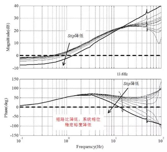 圖 4 不同短路比情況下,PLL回路開環(huán)回路Bode圖