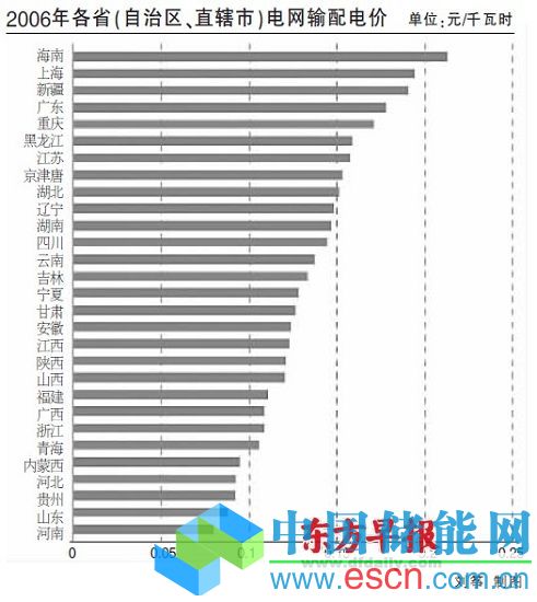 在中國過去的計劃經(jīng)濟年代,這種模式也有道理。但現(xiàn)在,這個價差已經(jīng)高到令人難以置信的地步。國家發(fā)改委在2006年、2007年出過一個輸配電價標(biāo)準(zhǔn),少的是9分錢每千瓦時(度),高的是0.1元多每千瓦時,其中,海南省最高——0.22元每千瓦時。也就是說,理論上,如果說真是保持這個差價的話,也算是計劃經(jīng)濟的一個合理性,發(fā)電價格是怎么樣,銷售價格是怎么樣,都已確定中間便是電網(wǎng)的收入。按照當(dāng)時的政策,全國主要用電省份的差價應(yīng)該是0.12元到0.15元每千瓦時,但現(xiàn)在上網(wǎng)電價和銷售電價的差額已經(jīng)是當(dāng)年的幾倍了。