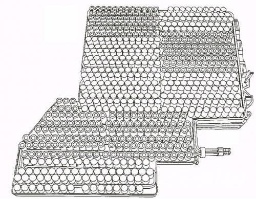 特斯拉對這些電池采用了分層管理的設(shè)計——每 69 個電池單元并連成一個電池組,而 9 個電池組又串聯(lián)成一個電池方塊,最后再串聯(lián)成整塊電池板。每個電池單元,電池組,和電池方塊都有保險絲,每個層級都會有電流,電壓和溫度的監(jiān)控,一旦電流過大立刻熔斷。