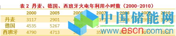 那么,風電發(fā)展與“窩電”之間是什么關系呢?風電享受優(yōu)先調(diào)度消納權,只要風電能夠發(fā)電,電力調(diào)度部門就會優(yōu)先安排風電上網(wǎng),必然對常規(guī)電源發(fā)電造成擠壓,導致常規(guī)電源利用小時數(shù)降低。同樣的道理,當夏季西南水電大發(fā)的時候,火電機組利用小時數(shù)也會被水電代替。丹麥、德國和西班牙被公認為是風電發(fā)展最具代表性的歐洲國家,但是這三個國家火電利用小時數(shù)卻呈現(xiàn)不同特點:丹麥火電利用小時數(shù)維持在3000多一點的水平,2000年以來在低位維持穩(wěn)定;德國火電利用小時數(shù)相對來說還是比較高的,在5000小時左右,年度之間的起伏比較大;西班牙火電利用小時數(shù)則是呈現(xiàn)非常明顯的下降趨勢,2010年已經(jīng)不到3000小時(如表2所示)。
