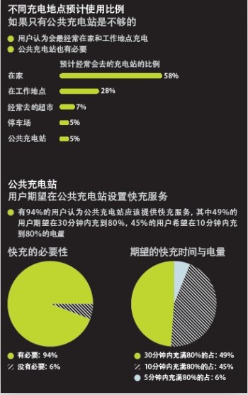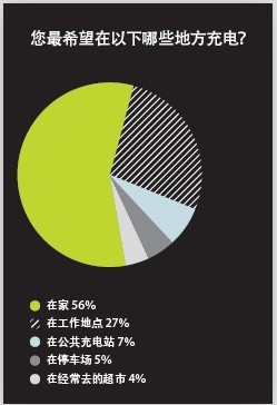 調(diào)查顯示,消費(fèi)者期待去充電的地點(diǎn)58%在家,28%在工作地點(diǎn),7%在經(jīng)常去的超市,而愿意去公共充電站進(jìn)行充電的比例只有5%。