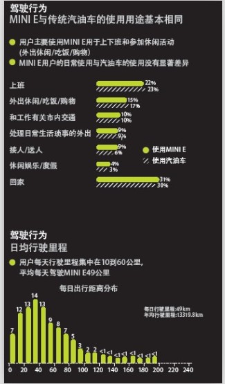 MINI E測(cè)試數(shù)據(jù)的來(lái)源主要有兩部分,一是安裝在每輛測(cè)試車上的數(shù)據(jù)收集器,二是每個(gè)月定期與用戶交流得來(lái)的數(shù)據(jù)。