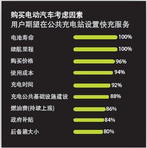 而眾多決定消費(fèi)者購(gòu)買電動(dòng)汽車要考慮的因素中:電池壽命和續(xù)駛里程成了必要條件。另外購(gòu)買價(jià)格、使用成本和充電時(shí)間也被90%以上的消費(fèi)者作為考慮購(gòu)買的因素。而這些因素也被視為電動(dòng)汽車未來(lái)發(fā)展的巨大挑戰(zhàn)。