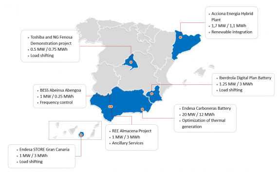 西班牙已經(jīng)開通運(yùn)營的電池儲(chǔ)能系統(tǒng)分布地圖