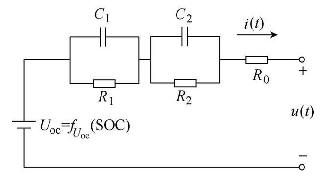 針對目前電池狀態(tài)估計(jì)精度較低、時效性差等問題,本文采用鋰離子電池二階Thevenin等效電路模型,并運(yùn)用自適應(yīng)無跡卡爾曼濾波(Adaptive Unscented Kalman Filter, AUKF)算法對電池狀態(tài)進(jìn)行實(shí)時估計(jì)。