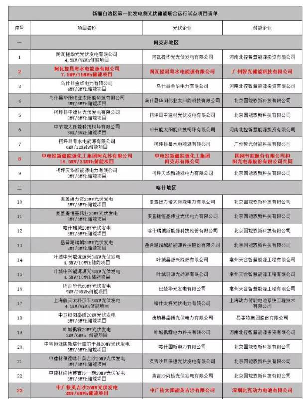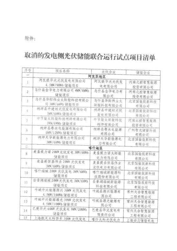 根據(jù)《關于取消一批發(fā)電側光伏儲能聯(lián)合運行試點項目的通知》,最終保留的僅有5個,其余的31個項目,基于“保持試點政策的嚴肅性”,已被移出名單。相應空缺出來的指標,新疆發(fā)改委稱將另行安排。