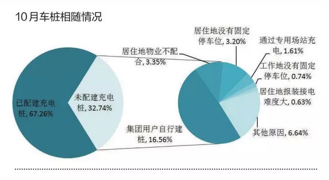 截止到2019年10月,通過(guò)充電聯(lián)盟成員內(nèi)整車(chē)企業(yè)采樣約98.98萬(wàn)輛車(chē)的車(chē)樁相隨信息,發(fā)現(xiàn)建設(shè)安裝私人充電樁的有66.6萬(wàn)輛,占67.26%;未隨車(chē)配建私人樁的有32.4萬(wàn)輛,占32.74%,接近1/3。