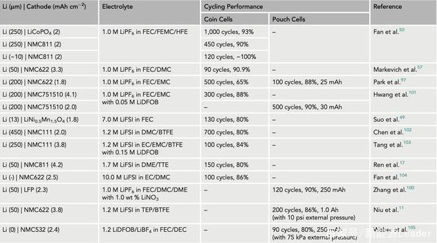 為了形成LiF含量更多的SEI膜,同時提升電解液不燃的特性,Wang等人采用了全氟溶劑電解液,從而在正負(fù)極的界面產(chǎn)生了LiF含量更高的界面膜,有效的抑制了鋰枝晶的生長和電解液在正極的氧化,在Li/NCM811體系中取得了優(yōu)異的循環(huán)性能。