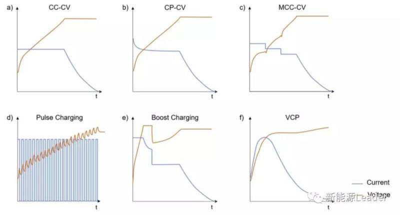恒流恒壓充電(CCCV)是最傳統(tǒng)的一種充電方式,該方式首先采用較大電流進行恒流充電,在達到截止電壓后,轉為恒壓充電,不斷降低充電電流,從而盡可能的減少電池的極化。因此對于這種傳統(tǒng)的充電方式而言,縮短充電時間最有效的方法就是提高充電電流,但是提升充電電流一方面會導致極化增加,增加恒壓充電的時間,另一方面大電流充電也會導致負極析鋰,因此對于快充而言選擇合適的充電策略也是非常重要的內容。