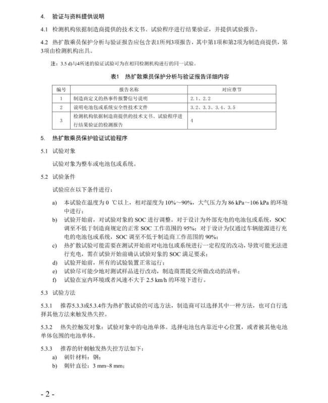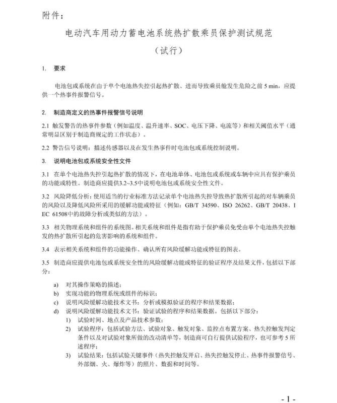 1.自2019年11月12日起,申請《公告》新能源汽車產品準入時,企業(yè)可自愿按《熱擴散測試規(guī)范》增加熱擴散測試項目,提交由第三方檢測機構出具的檢測報告。