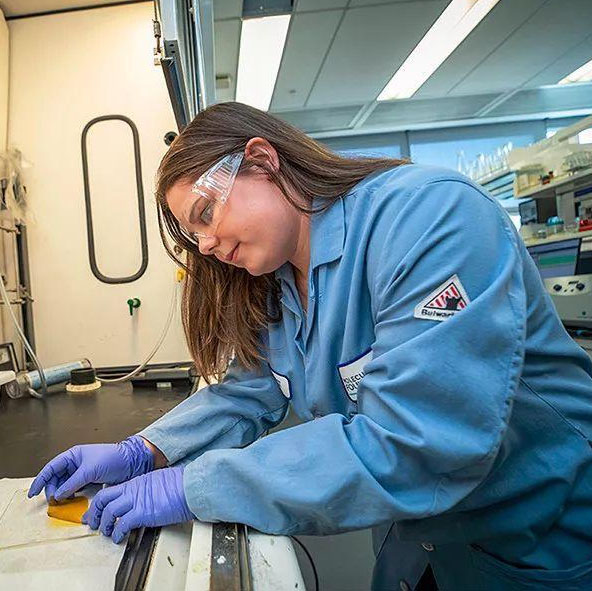 下圖所示:伯克利實(shí)驗(yàn)室分子鑄造廠的研究生 Miranda Baran 在準(zhǔn)備 AquaPIM 樣本。