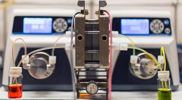 大多數(shù)柵極電池的化學(xué)物質(zhì)具有高度堿性的電極,一側(cè)是帶正電的正極,另一側(cè)是帶負(fù)電的陰極。但是,目前最先進(jìn)的隔膜是為酸性化學(xué)物質(zhì)而設(shè)計(jì)的,例如燃料電池中的氟化膜,但不適用于堿性流體電池。(在化學(xué)中,pH值是溶液中氫離子濃度的一種度量。純水的pH值為7,呈中性。從另一方面說(shuō),堿性溶液的氫離子濃度較低,因此具有較高的pH值,或者說(shuō)pH值高于7。在堿性電池中,pH值可以高達(dá)14或者15。)